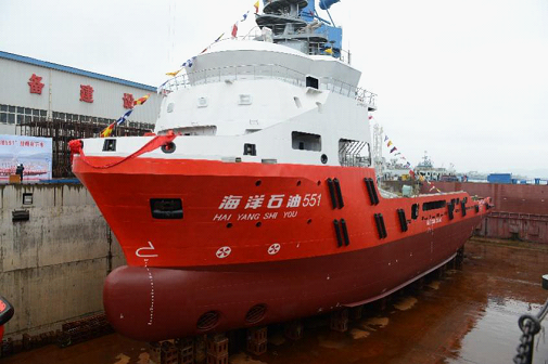 5月18日,大連遼南船廠為中海油服建造的兩艘5000馬力LNG動力守護(hù)供應(yīng)船“海洋石油550”“海洋石油551”順利下水。中國船舶七〇四所為該系列船舶配套全船電力推進(jìn)系統(tǒng),副所長李建明出席下水儀式。