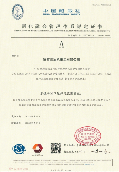 陜柴作為工信部兩化融合管理體系貫標(biāo)試點企業(yè),于2019年8月正式啟動兩化融合管理體系貫標(biāo)工作,并于2021年9月通過評定機構(gòu)審核取得評定證書,2022年7月通過評定機構(gòu)監(jiān)督審核,目前體系正常有效運行。