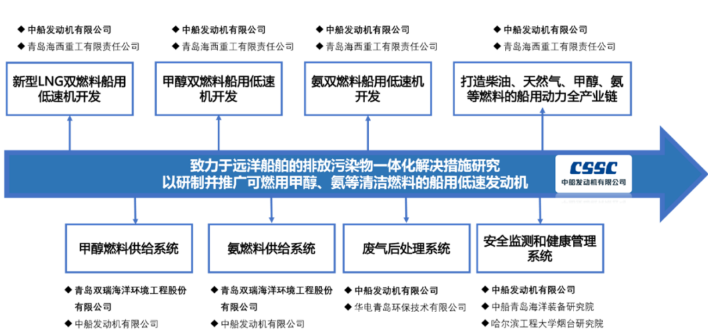 中船發(fā)動機技術(shù)創(chuàng)新中心將緊密圍繞“雙碳目標”,緊跟世界前沿技術(shù),在碳減排新賽道上加快推廣綠色低碳領(lǐng)域的技術(shù)創(chuàng)新、產(chǎn)品創(chuàng)新,加快突破卡脖子難題。圍繞甲醇、氨等清潔燃料船舶發(fā)動機的研制開發(fā),柴油、天然氣等傳統(tǒng)燃料船舶發(fā)動機的改善優(yōu)化,積極推進燃料供給系統(tǒng)、排放后處理系統(tǒng)、安全監(jiān)測和健康管理系統(tǒng)等核心技術(shù)應(yīng)用,打造集儲運、供給、燃燒、排放、監(jiān)控為一體的船舶排放污染物控制技術(shù)創(chuàng)新集群。