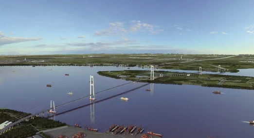 江蘇張靖皋長江大橋南航道橋主跨2300米,北航道橋主跨1208米,將創(chuàng)造世界最大跨徑懸索橋、最高懸索橋索塔等六項“世界之最”以及首創(chuàng)超大型自行走裝配式索鞍等六個“世界首創(chuàng)”。張靖皋長江大橋位于江陰長江大橋下游約28公里,滬蘇通長江大橋上游約16公里,連接蘇州、泰州和南通三市,是“十四五”期間國家重點推進的過江通道項目。大橋建成通車后,將對落實長三角區(qū)域一體化發(fā)展和長江經(jīng)濟帶發(fā)展國家戰(zhàn)略,優(yōu)化長江干線過江通道布局,完善區(qū)域路網(wǎng)布局,促進跨江融合發(fā)展等帶來直接影響。