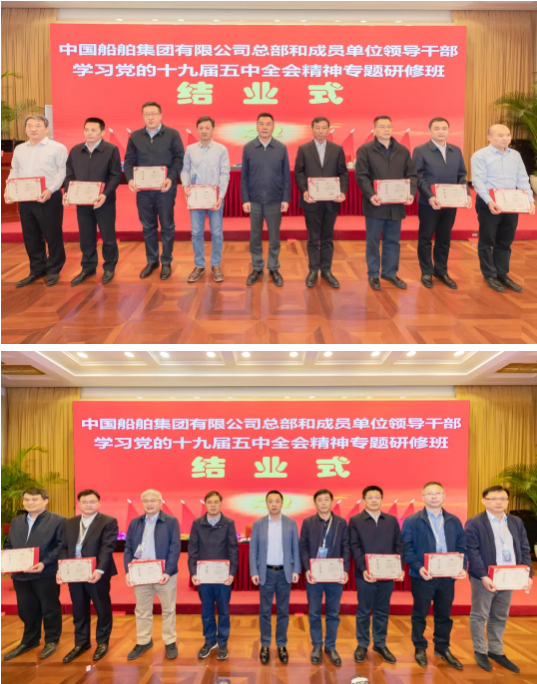 4月23日,中國船舶集團有限公司總部和成員單位領(lǐng)導(dǎo)干部學(xué)習(xí)黨的十九屆五中全會精神和黨史學(xué)習(xí)教育專題研修班圓滿結(jié)業(yè)。培訓(xùn)期間,中國船舶集團黨組書記、董事長雷凡培以《深入貫徹落實習(xí)近平總書記重要指示批示精神 努力加快建設(shè)世界一流船舶集團》為題給全體學(xué)員們講授了第一課,中國船舶集團黨組副書記、總經(jīng)理楊金成,黨組成員、副總經(jīng)理孫偉、盛紀綱以及相關(guān)部門負責(zé)人先后出席各期結(jié)業(yè)式并聽取了學(xué)員們的學(xué)習(xí)匯報。