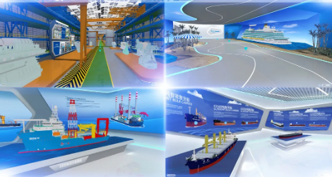 云展廳運(yùn)用360度全景3D建模、沉浸式場(chǎng)景以及實(shí)時(shí)渲染等領(lǐng)先創(chuàng)新技術(shù),打造了高端3A(“Anybody、Anytime、Anywhere”)展示平臺(tái),特別是以實(shí)景還原的場(chǎng)景,動(dòng)態(tài)展示大型郵輪、液化天然氣(LNG)船、雪龍2號(hào)、奮斗者號(hào)等亮點(diǎn)產(chǎn)品,為參觀者營(yíng)造了身臨其境的逼真效果。