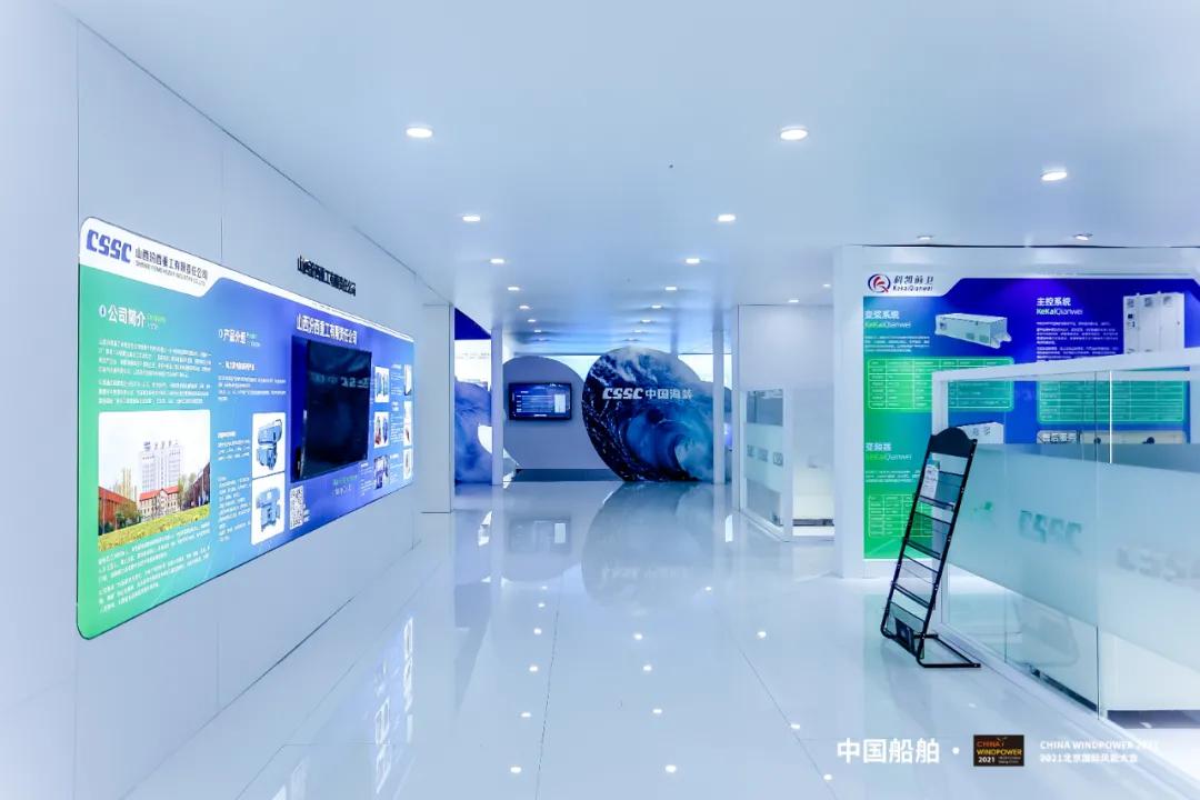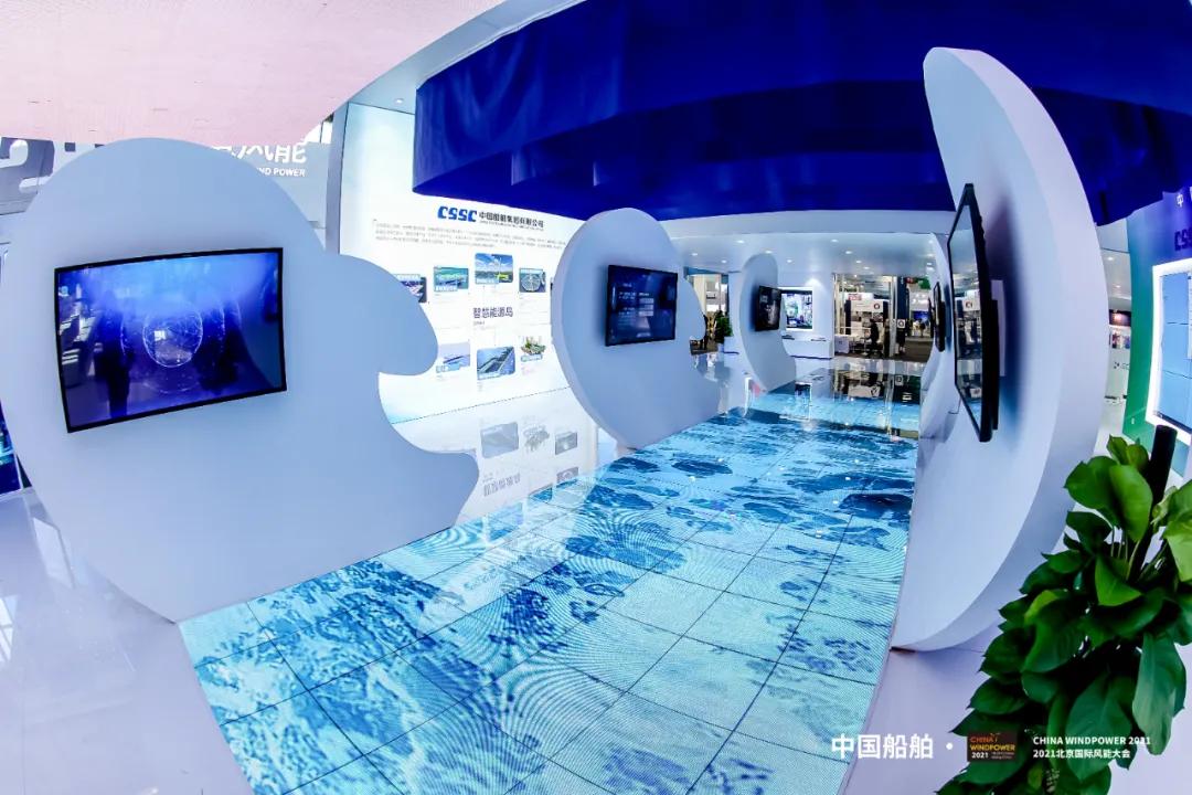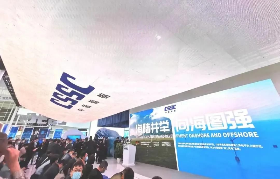 此次展會上,中國船舶集團(tuán)以“創(chuàng)新引領(lǐng)、綠色發(fā)展強(qiáng)使命,海陸并舉、向海圖強(qiáng)顯擔(dān)當(dāng)”為主題,在900平方米的歷屆風(fēng)能展最大展臺上,按照建設(shè)開發(fā)、整機(jī)制造、關(guān)鍵核心部件和產(chǎn)業(yè)配套四個版塊分區(qū)展出。