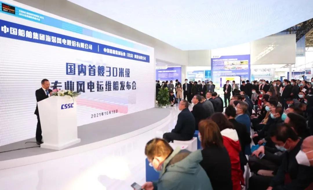 在風(fēng)能展上,中國海裝與遠(yuǎn)舟科技聯(lián)合設(shè)計制造的國內(nèi)首艘30米級專業(yè)風(fēng)電運(yùn)維船發(fā)布,最大裝載38噸,可抗浪高4米,可搭乘12名運(yùn)維人員和6名船員,具有高強(qiáng)度、輕重量的結(jié)構(gòu)特點(diǎn)和優(yōu)良的安全性、快速性、防腐性、耐波性等,將于今年正式投運(yùn)。
