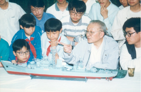潘鏡芙1996年在浦南中學(xué)為學(xué)生們講艦船
