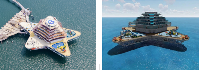 以濱海城市為依托,該方案重點建設需求旺盛、基礎好、見效快的“海洋文旅+深海養(yǎng)殖+海上風電+海洋信息管網(wǎng)”4個要素單元,釋放旅游、養(yǎng)殖、綠色能源耦合效應。綜合體采用模塊化設計、區(qū)域化協(xié)同部署,由濱海向深遠海帶狀輻射,布局建設游輪游艇群、養(yǎng)殖文旅平臺、深海養(yǎng)殖產(chǎn)業(yè)園、分布式海上風電場及智能微電網(wǎng)、深海移動養(yǎng)殖工廠和海洋信息管網(wǎng)等風漁文旅結合項目。以郵輪游艇連接海上設施,構建海上旅游娛樂交通網(wǎng),以中小型郵輪航線實現(xiàn)沿海城市綜合體間串聯(lián),構建沿海城市海上旅游觀光帶,同時培育郵輪與康養(yǎng)休閑岸?;尤诤夏J?,捕捉、帶動、滿足多元化潛在消費需求,打造風漁文旅等一二三產(chǎn)業(yè)融合新業(yè)態(tài),形成沿海藍色海洋經(jīng)濟帶。