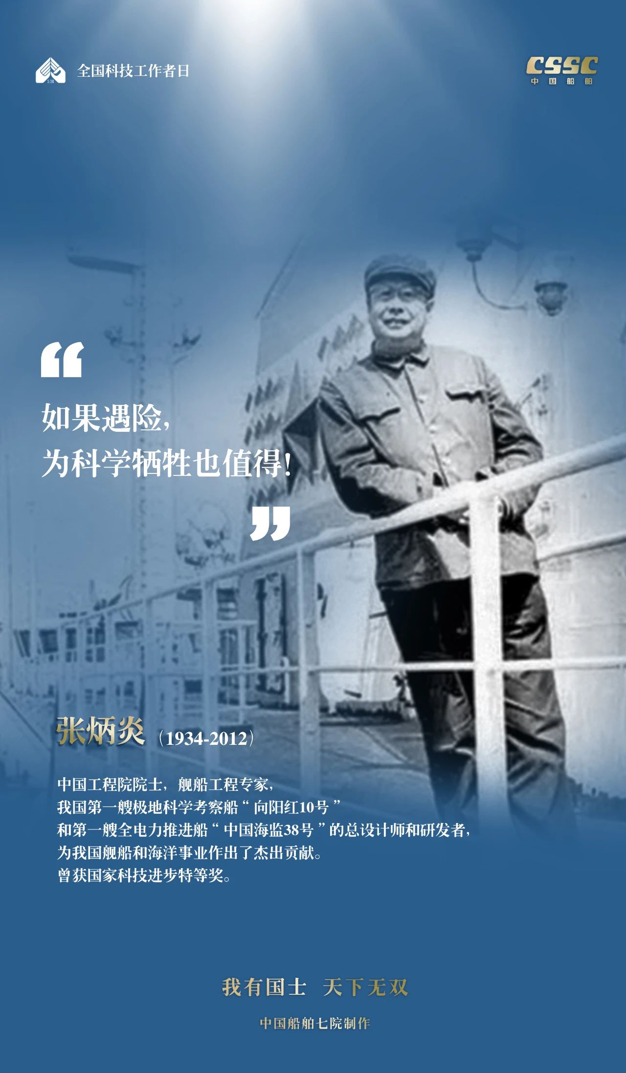 2024年5月30日,是第八個(gè)“全國(guó)科技工作者日”,一代代中國(guó)船舶人胸懷國(guó)之大者,無怨無悔勇攀科技高峰。他們的事跡也許無人知曉,他們的智慧卻是科學(xué)火種,他們用精神點(diǎn)亮希望之光,他們用勇氣探尋未來之路,他們有個(gè)共同的名字中國(guó)船舶科技工作者。
