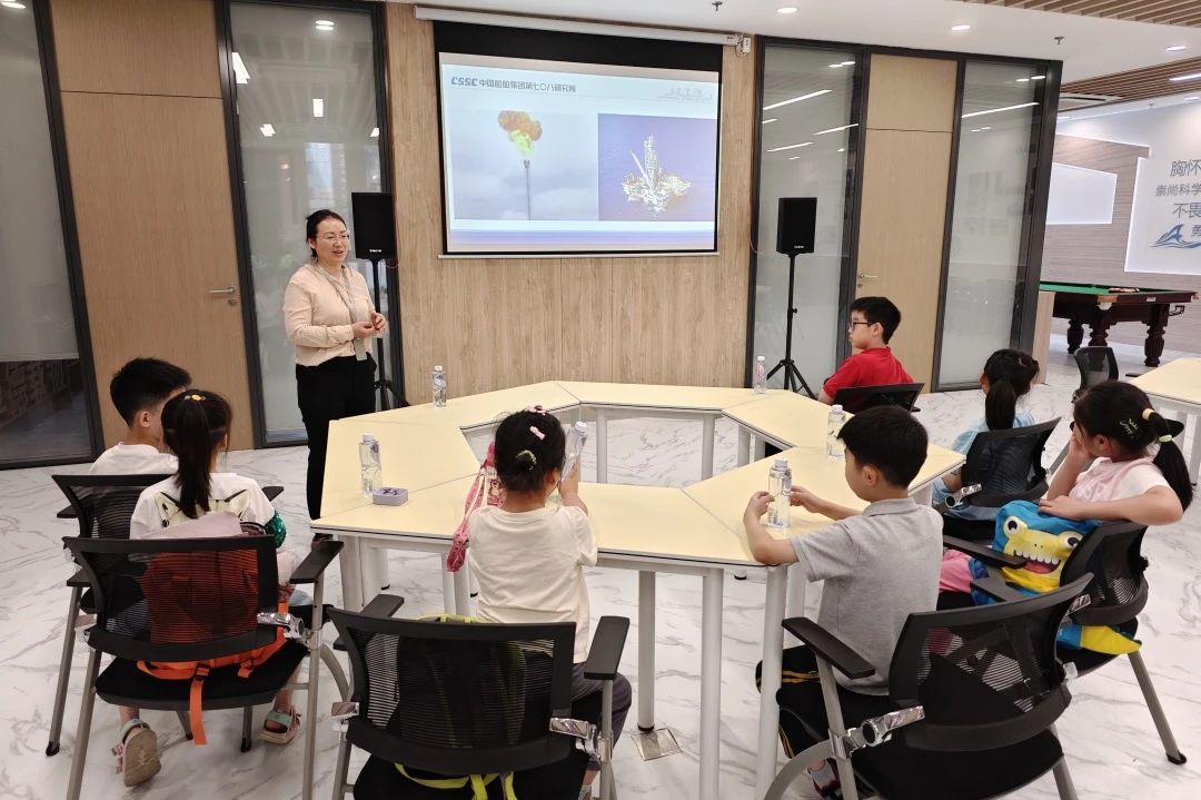 通過“國之重器”模型展示講解,積極聯(lián)動“愛在深藍”船舶青年優(yōu)秀志愿者講授“國之重器”的由來,孩子們感悟到船舶科技的魅力,也對我國船舶工業(yè)成就有了直觀生動的認(rèn)識。