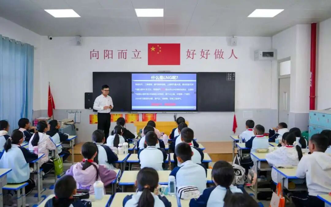 同時(shí),志愿者為94名小學(xué)生帶去3堂科普課程,回顧人民海軍發(fā)展歷程,厚植孩子們的愛(ài)國(guó)情懷;精講民用船舶種類(lèi),點(diǎn)亮孩子們的探索精神;揭秘LNG船關(guān)鍵技術(shù),展現(xiàn)中國(guó)“智”造實(shí)力,增強(qiáng)孩子們的自豪之感。課程中,志愿者們深入淺出講解,學(xué)生們?nèi)褙炞W(xué)習(xí),同學(xué)們感受到中國(guó)船舶“智領(lǐng)深藍(lán)”的魅力,紛紛提問(wèn):護(hù)衛(wèi)艦一次能航行多遠(yuǎn)?一艘LNG船能載多少噸液化天然氣?“海上帶貨王”到底有多大?……孩子們展現(xiàn)出對(duì)國(guó)防和海洋的濃厚興趣。